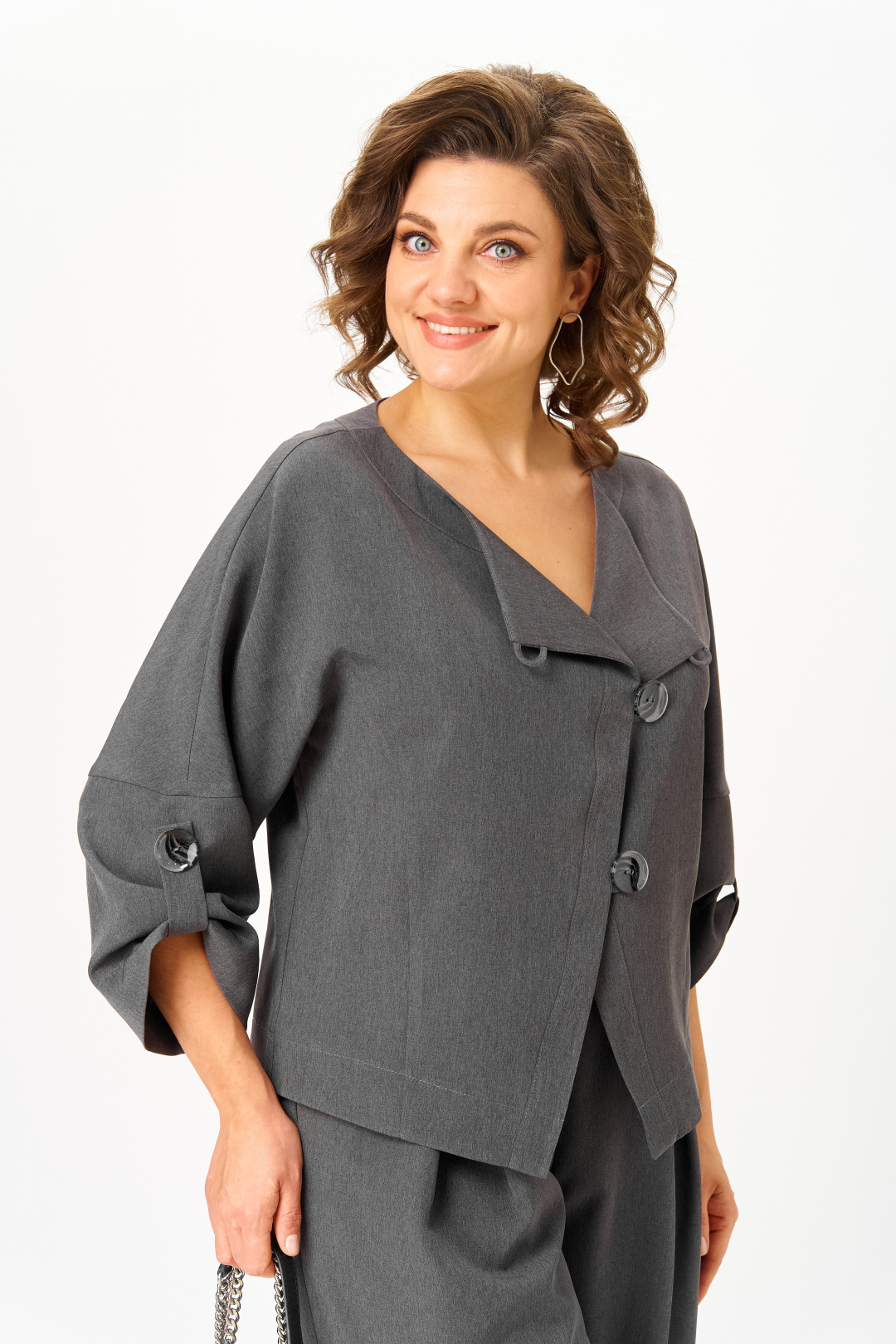 Универсальный костюм, который выглядит дорого и современно, но при этом дарит комфорт и лёгкость. Его можно носить как комплект или по отдельности: жакет с асимметричной застёжкой и акцентными пуговицами легко сочетается с джинсами, а брюки свободного кроя идеально смотрятся с блузой или футболкой.