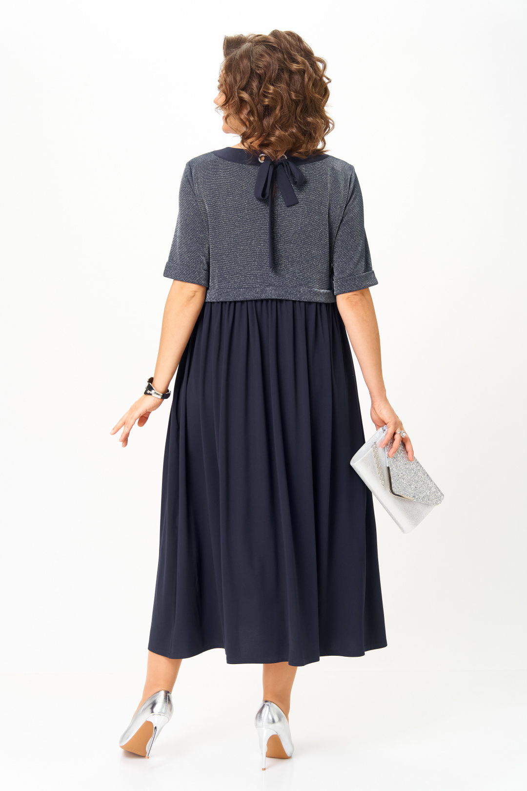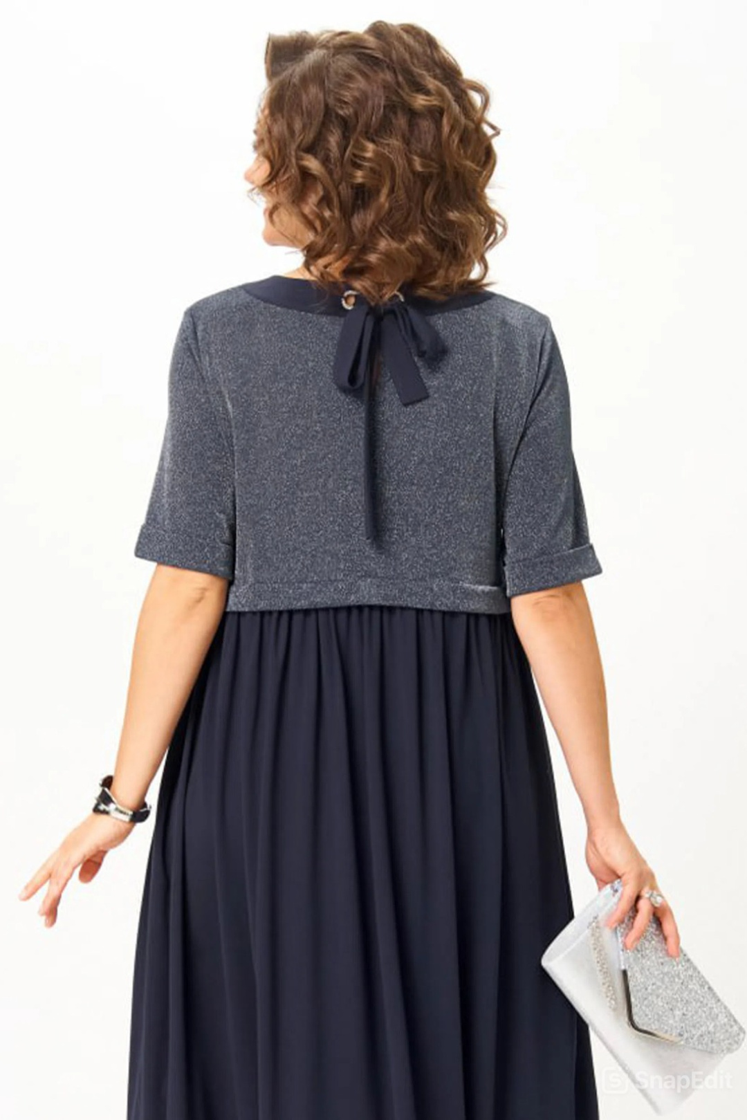 Сверху — ультракомфортный трикотаж с натуральными волокнами и мягким люрексом, снизу — лёгкое текстильное полотно, которое красиво драпируется и держит форму. Лёгкое сияние создаёт ощущение праздника без перегруза и дискомфорта.