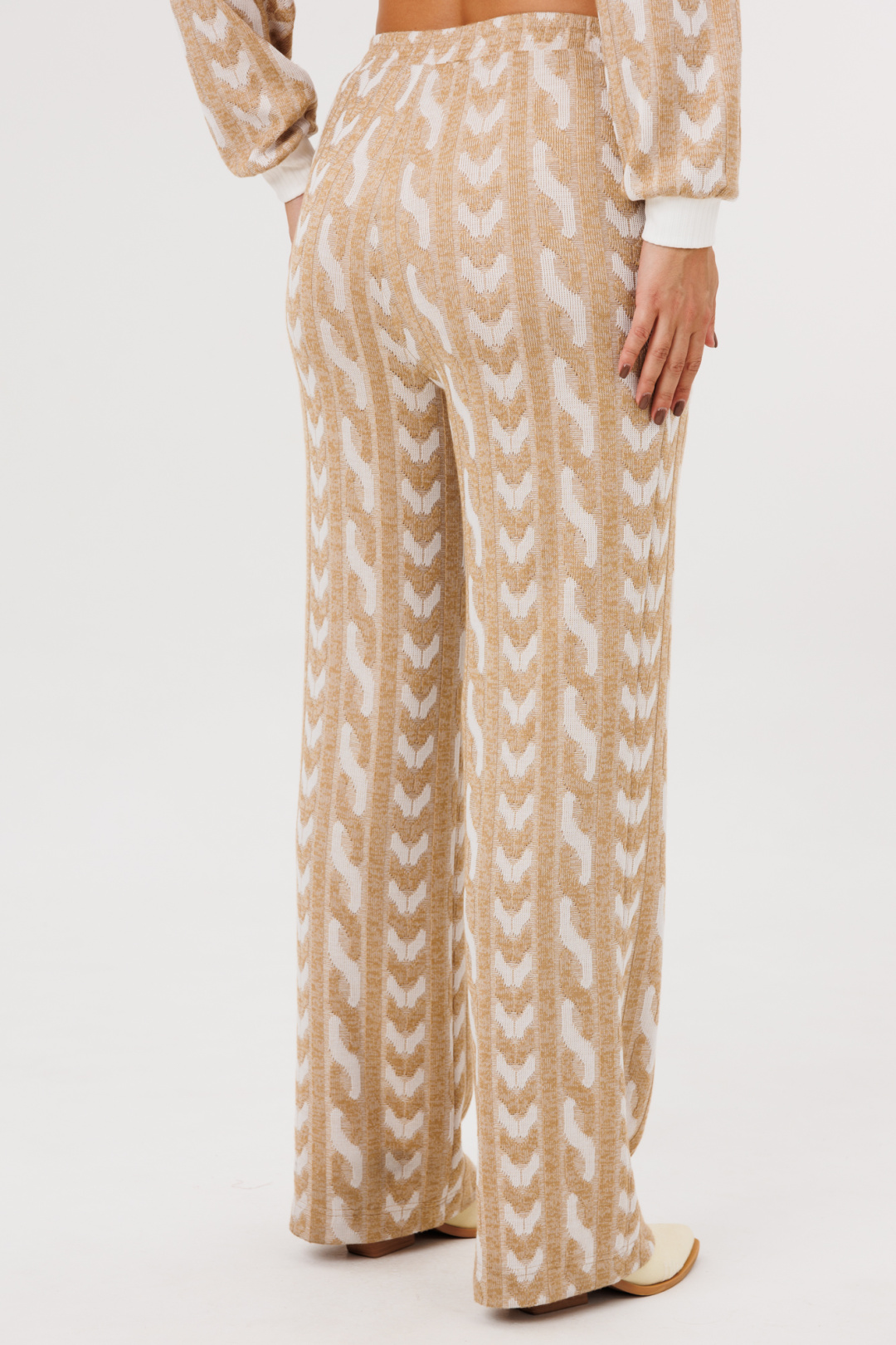 Брюки свободного прямого кроя с высокой посадкой, с карманами в боковых швах. Верхний срез брюк оформлен поясом с эластичной резинкой.