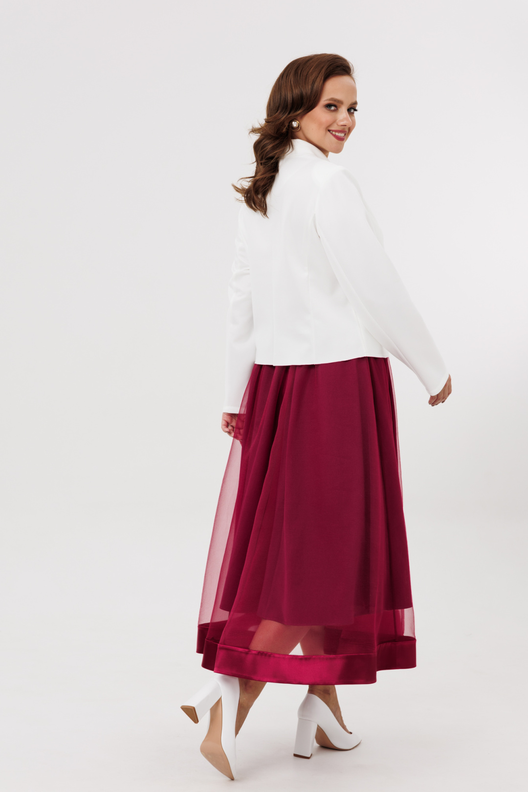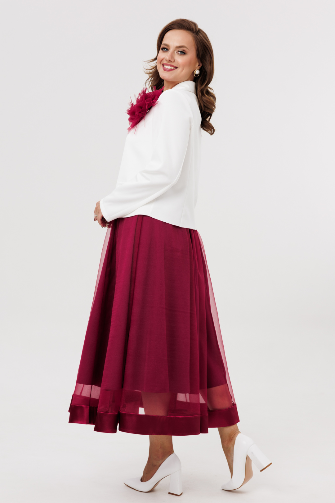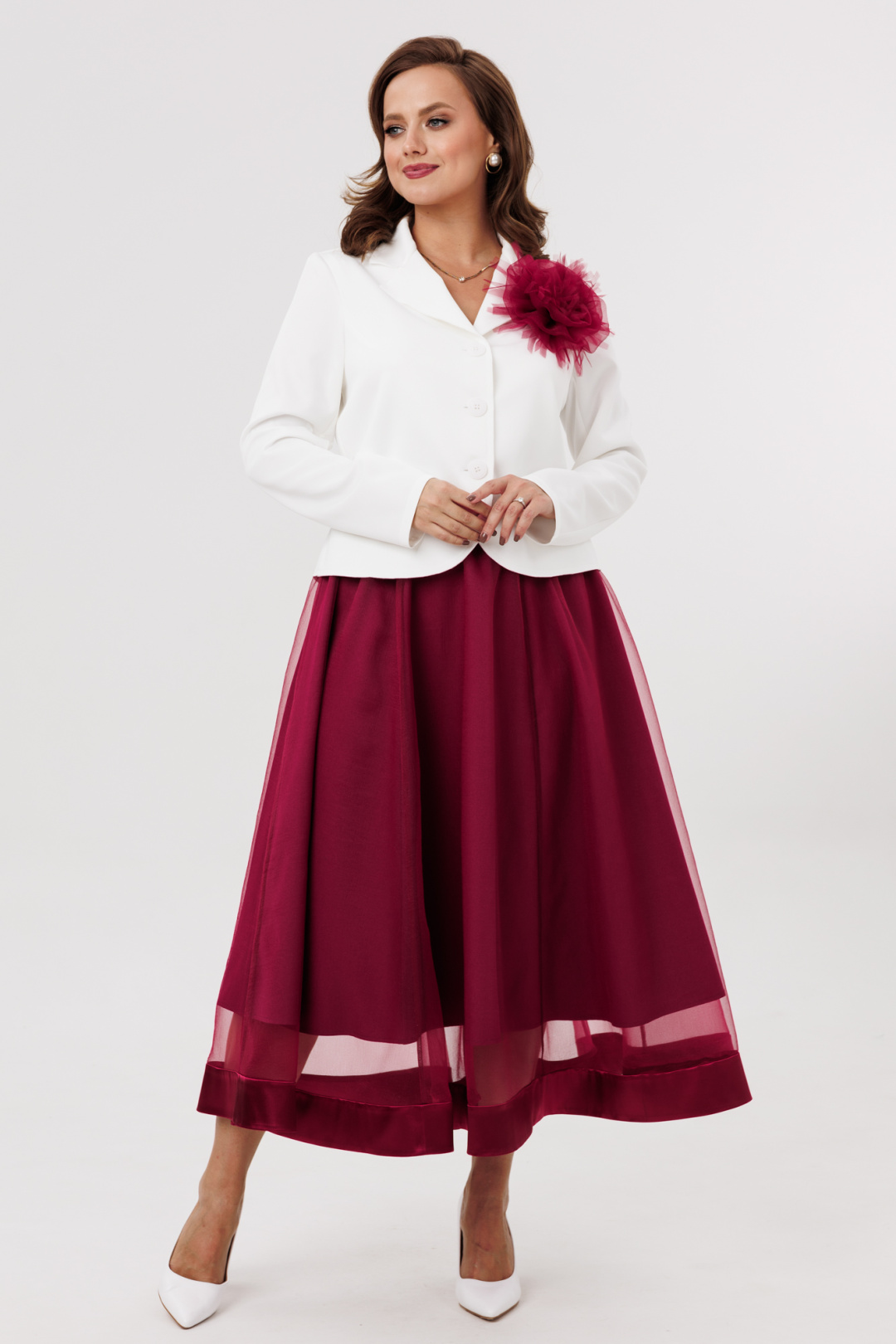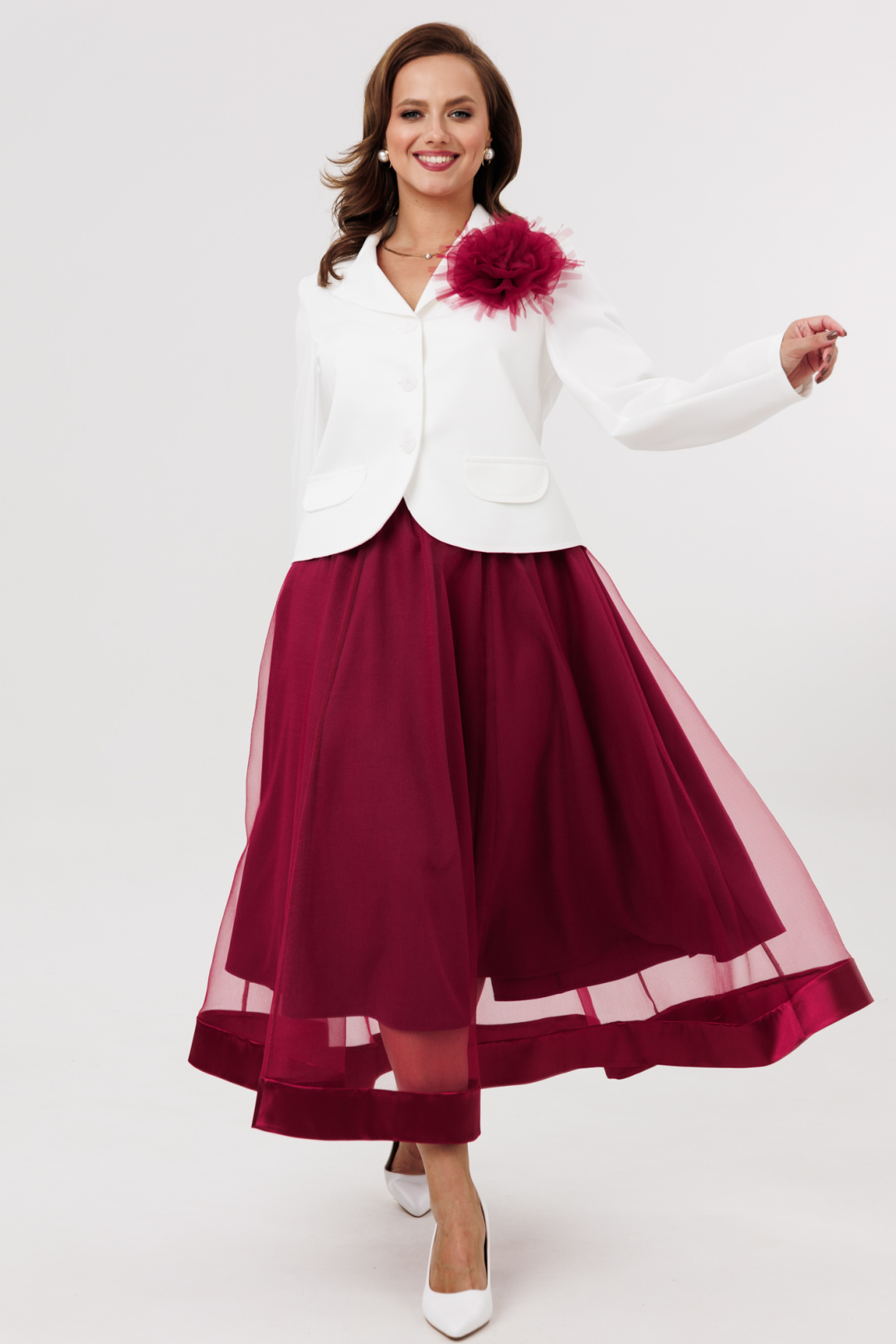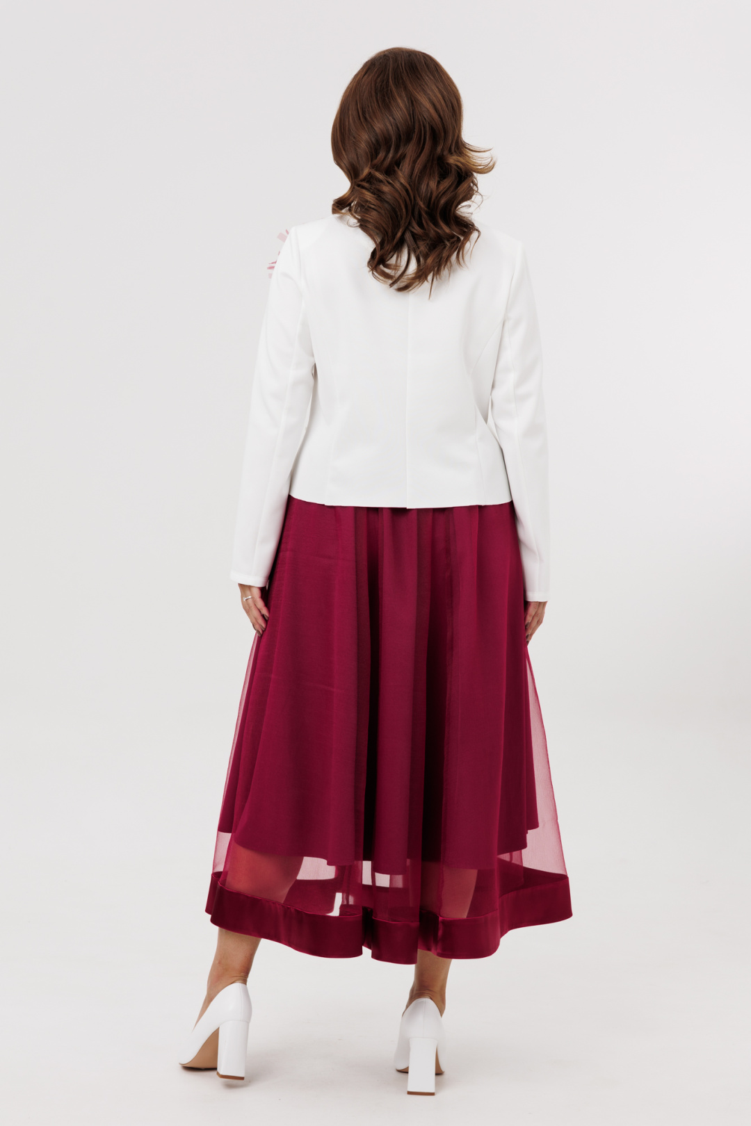 В модели 285 молочно-бордового цвета жакет декорирован съемным цветком бордового цвета (на булавочке).