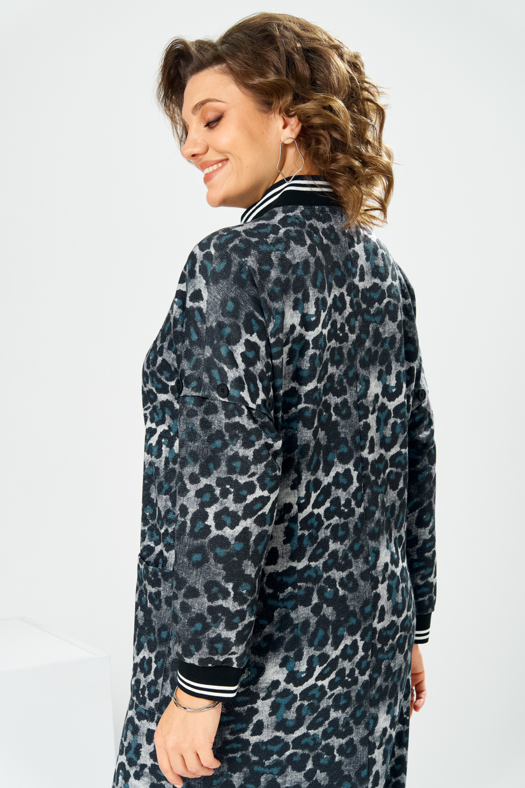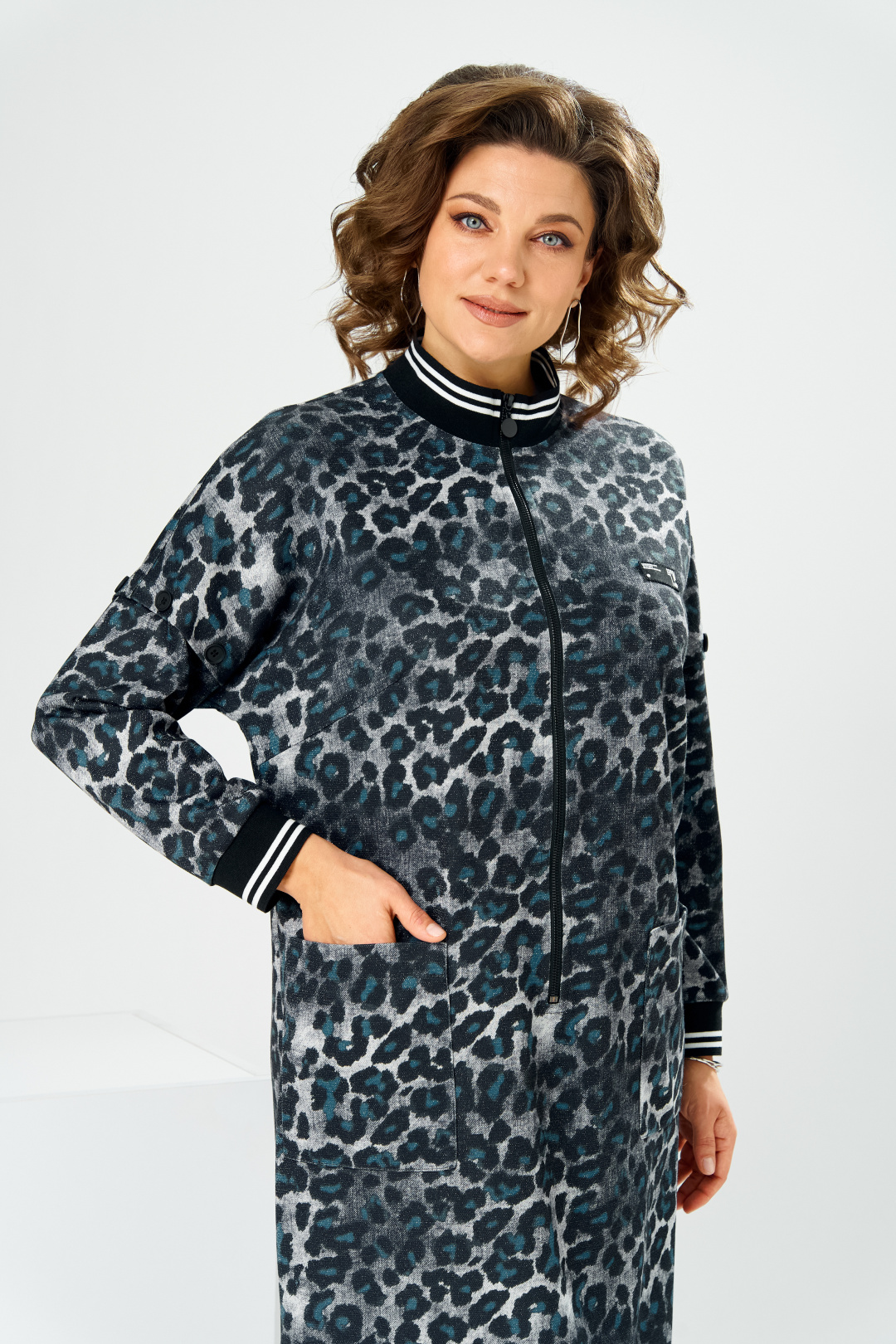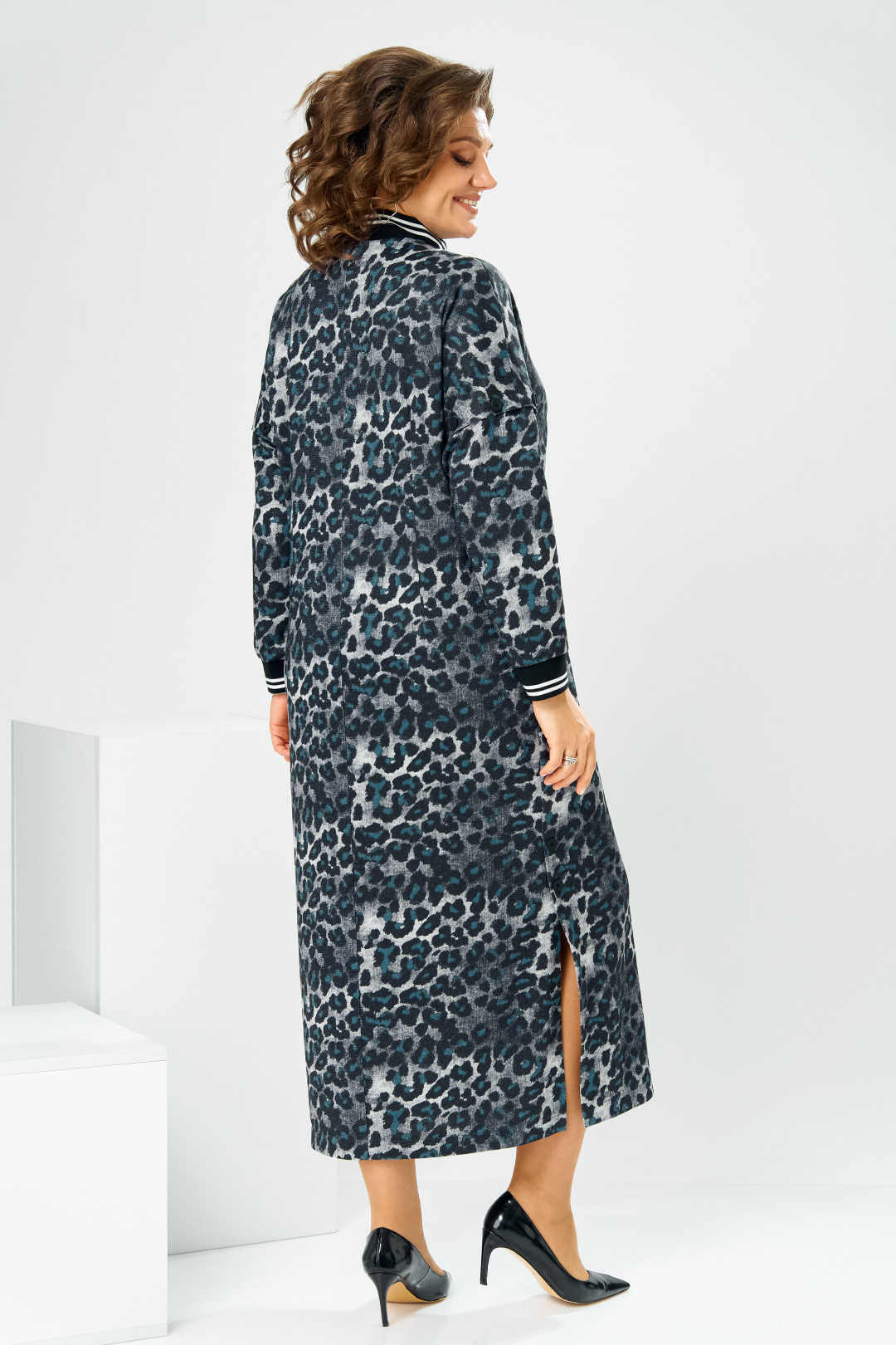 Платье женское, предназначено для повседневной носки. Платье женское прямого силуэта, длиной до нижней части икры. Перед с 2-мя нагрудными выточками с настрочной аппликацией на левой части переда на уровне линии груди, с 2-мя накладными прямоугольными карманами на уровне линии бёдер. Спинка со средним швом и 2-мя таллиевыми вытачками. Боковые швы внизу со шлицами закреплёнными пришивными пуговицами. Горловина круглая с втачной  отделочной стойкой. Застёжка на втачную тесьму-молнию по центру переда. Платье с цельнокроенным рукавом с горизонтальным подрезом, с верхней части сформирована цельнокроенная планка, закреплённая на нижней 4-мя пришивными пуговицами. Рукав длинный с притачной отделочной манжетой. Платье без плечевых накладок. Длина спинки платья 127 см, ширина рукава под проймой 22 см.