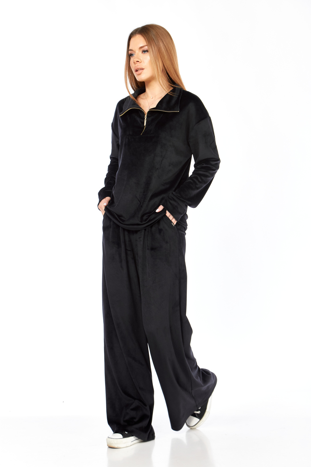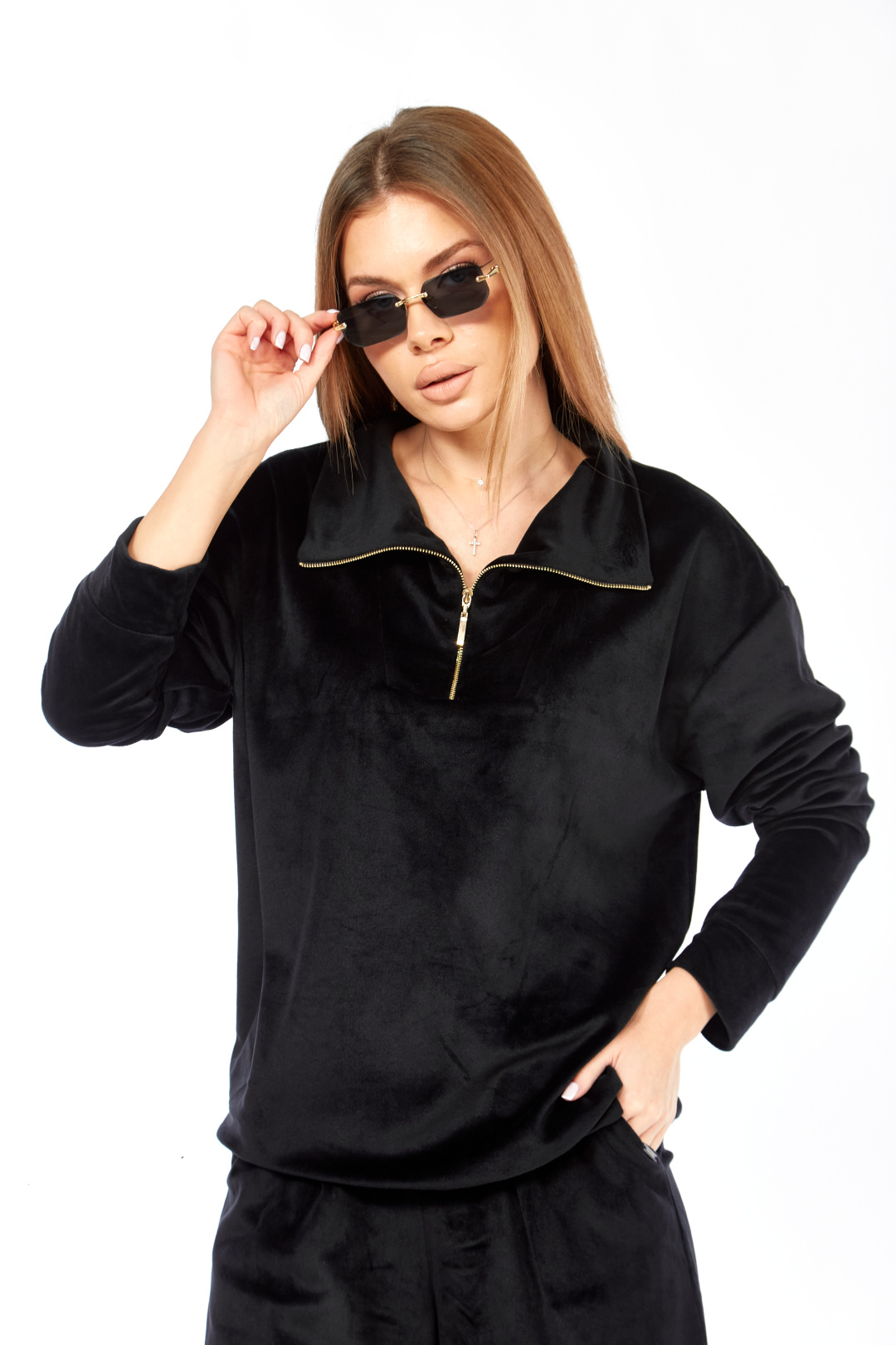 Элегантный джемпер- черного цвета – идеальный выбор для создания утонченного образа. Модель выполнена в прямом силуэте со спущенным плечом, что придает ей современный и стильный вид.Воротник -стойка двойной с цельнокроеной планкой с застежкой на тесьму-молнию.Стильный джемпер типа оверсайс, прекрасно сочетается с брюками палаццо модель 452 . Можно собрать комплект. Рукава - спущенные, длинные,втачные, низ обработан притачной манжетой. Стиль и элегантность на работе в офисе и в повседневной жизни, этот черный джемпер больших размеров идеально подойдет для вашего гардероба!