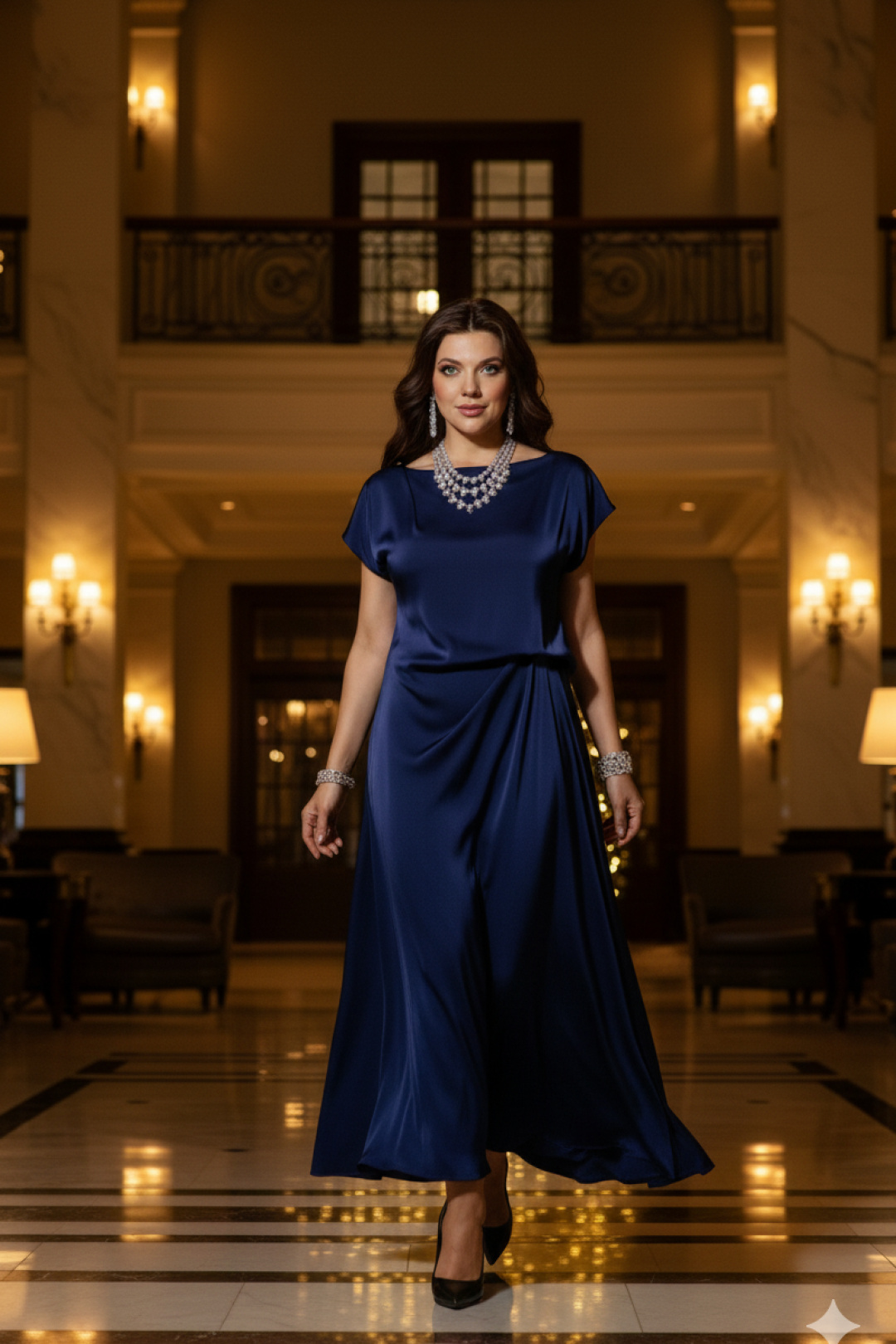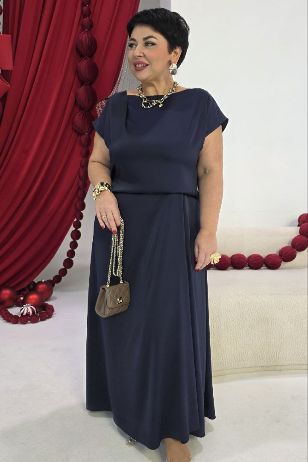 Стильное платье идеально подходит для нарядного образа вечернего мероприятия. Легкое, скульптурной формы оно игриво ведет себя в движении плавностью линий и легкостью. Платье без застежки полуприлегающего силуэта. Подкладка из основной ткани в верхней части лифа. Высокая посадка на талии придает свободу в движении, элегантный силуэт и комфорт в движении. Главным акцентом является изящно заложенные складки на талии. Длина платья 140 см, ширина плеча 19,5 см (р 50-54), 21 см (р 56-60).