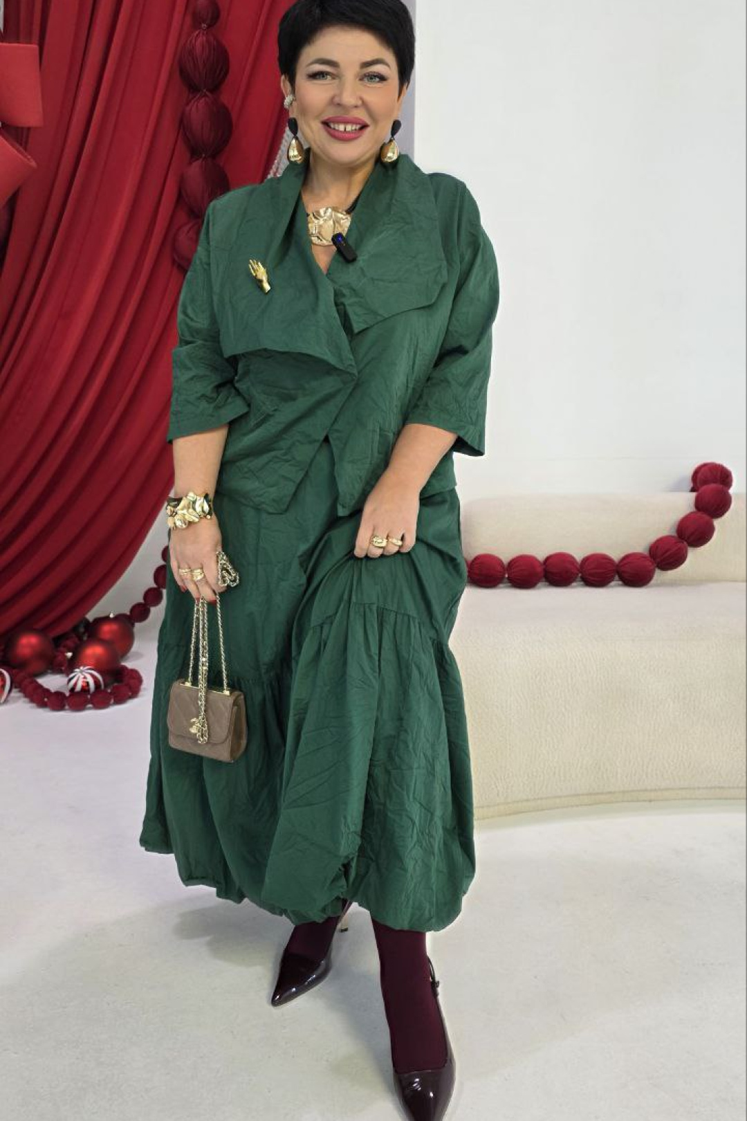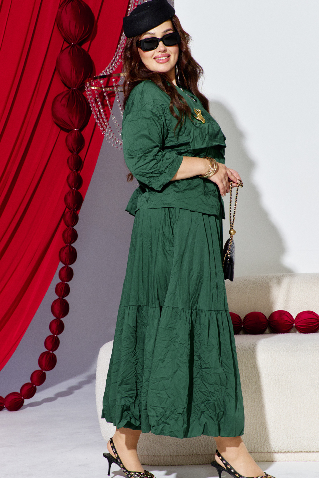 Юбка-баллон, трапециевидного силуэта с горизонтальным подрезом и сборкой. Пояс в юбке притачной с эластичной тесьмой-резинкой, что обеспечивает максимально удобную посадку на любой тип фигуры. В боковых швах юбки карманы. Юбка на подкладке. Обращаем Ваше внимание, что фурнитура может незначительно отличаться от фото.