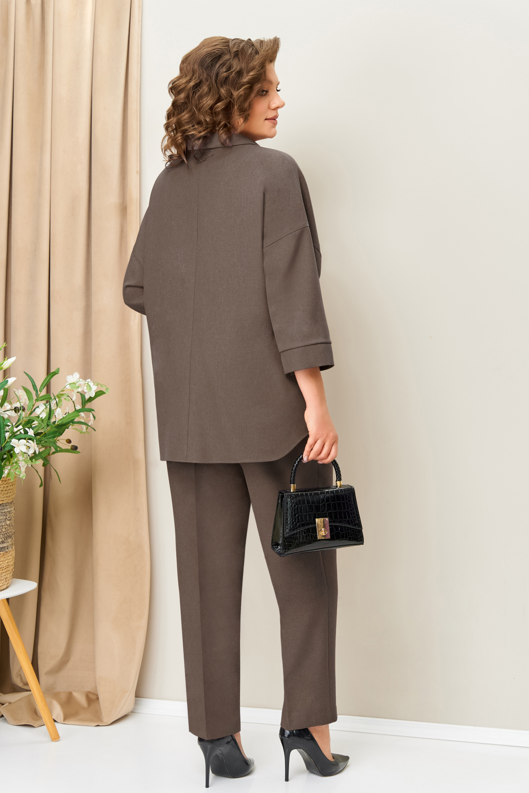 Состав: жакет, брюки:полиэстер 66%, вискоза 33%, эластан 1%. блуза: полиэстер 95%, эластан 5%