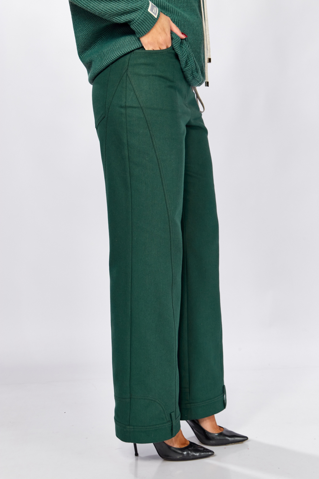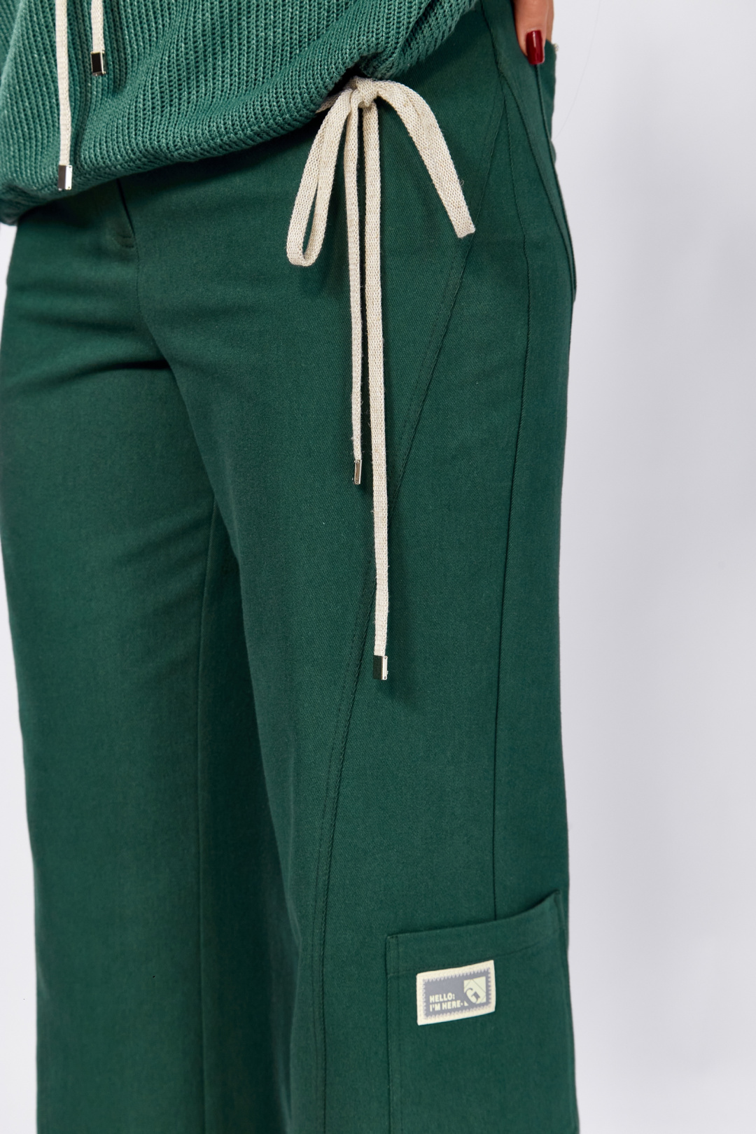 Стильный комплект изумрудного цвета, согреет вас в прохладную осеннюю погоду на прогулке, и не оставит без внимания на работе. Джемпер прямого силуэта с рукавами реглан и капюшоном выполнен из трикотажного полотна. Низ и капюшон с кулиской, в которую продет шнур с декоративными наконечниками.